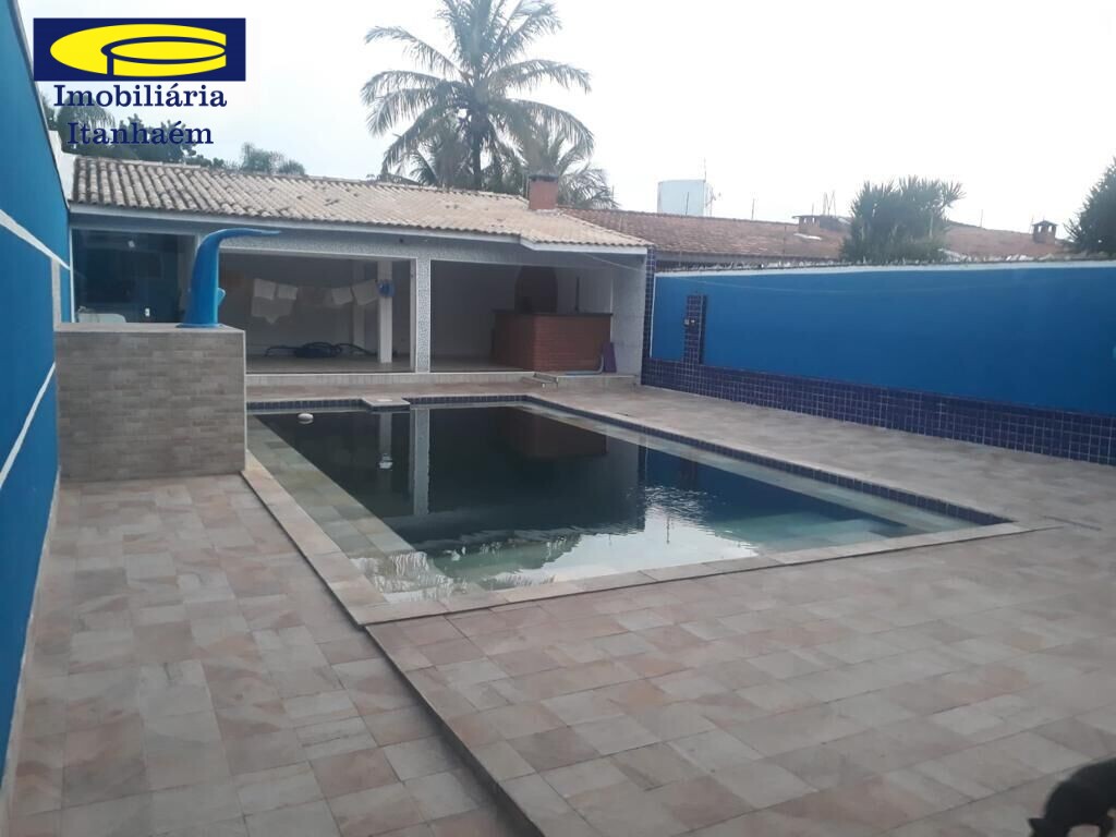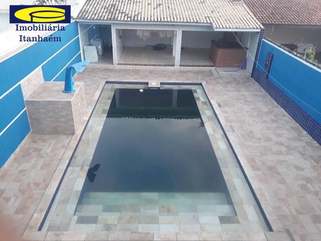 Linda casa dois quarteirões da praia do Cibratel, 4 dormitórios, sendo 1 suíte, sala 2 ambientes, cozinha, quintal, lavanderia, área gourmet e piscina com cascata.